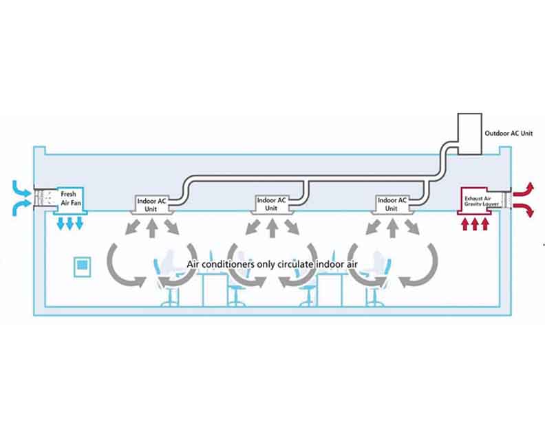 One of the key advantages of this system is its ability to maintain a healthy indoor air quality without disrupting the indoor climatic conditions. By allowing a controlled exchange of stale air with fresh air, it is possible to reduce the risk of Sick Building Syndrome and promote a healthier living or working environment. But the limitation of this system is that it works only for non-inverter compressors that functions on cut-in & cut-off cycles upon maintaining set temperature in the air-conditioned room.