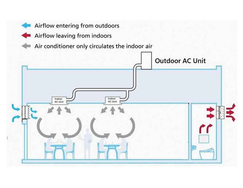 In most residential or commercial buildings, where window air-conditioners and wall mounted split air-conditioners are predominantly used, the doors and windows of the rooms are kept closed while the AC is operating to maximise cooling efficiency. However, this approach can negatively impact the IAQ.