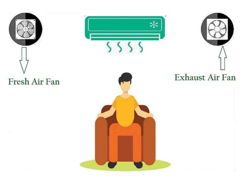 The operation of this fresh air fan can be controlled by sensing either the room temperature or else the CO2 levels, ensuring that a consistent flow of fresh air is introduced into the room to prevent the buildup of stale or contaminated air. The provision of air-filter at the fresh air fan inlet is essential for restricting the entry of pollutants, allergens, and other unwanted particles through the outdoor fresh air that may affect the health and comfort of the occupants.