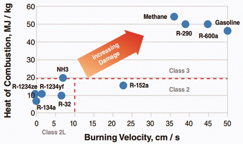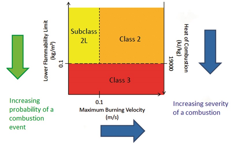 Figure 3: Flammability classes of flammable refrigerants according to ASHRAE standard 34