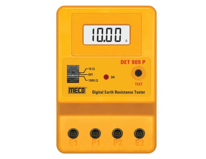 MECO New Digital Earth Resistance Tester (Model: DET 909 P) is designed for measurement of Earth Resistance of Earthing in the Electrical System. This instrument finds wide applications for testing Earthing of Installations in Power Industries, Telecommunication Networks & Electrical Traction Systems etc.