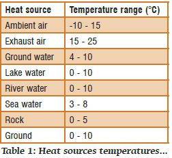 The technical and economic performance of a heat pump is closely related to the characteristics of the heat source. An ideal heat source for heat pumps in buildings has a high and stable temperature during the heating season, is abundantly available, is not corrosive or polluted, has favourable thermophysical properties, and its utilisation requires low investment and operational costs. In most cases, however, the availability of the heat source is the key factor determining its use. The Table 1 presents commonly used heat sources. Ambient and exhaust air, soil and ground water are practical heat sources for small heat pump systems, while sea/lake/river water, rock (geothermal) and waste water are used for large heat pump systems.