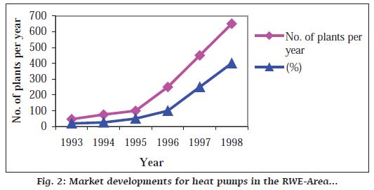 The ground-source machine had lower demand (summer and winter) and lower heating energy use than either of the air heat pumps. Comparisons with natural gas must be based on cost since the units for natural gas (therm = 100,000 Btu) are different than electrical energy units (kWh). The development can also be seen in individual regions. In Figure 2, the number of installations realised within an incentive programme of the German utility RWE is depicted.